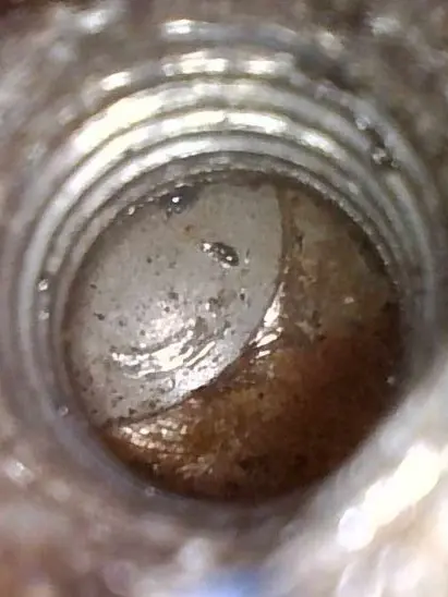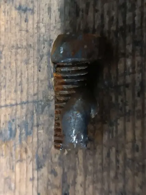 Dieses M6 Schrauben Fragment haben wir aus dem Halter der Verschraubung links am Träger gefunden und heraus geholt.