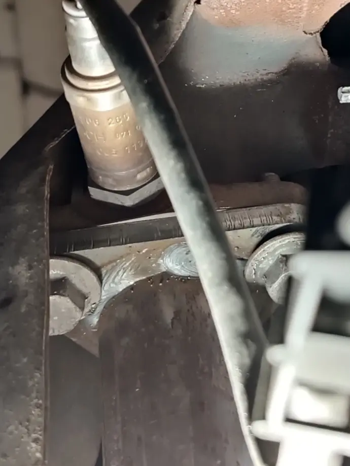 Hier hat jemand ernsthaft versucht mit Schweißpunkten die Mutter im Halter zu verschweißen.